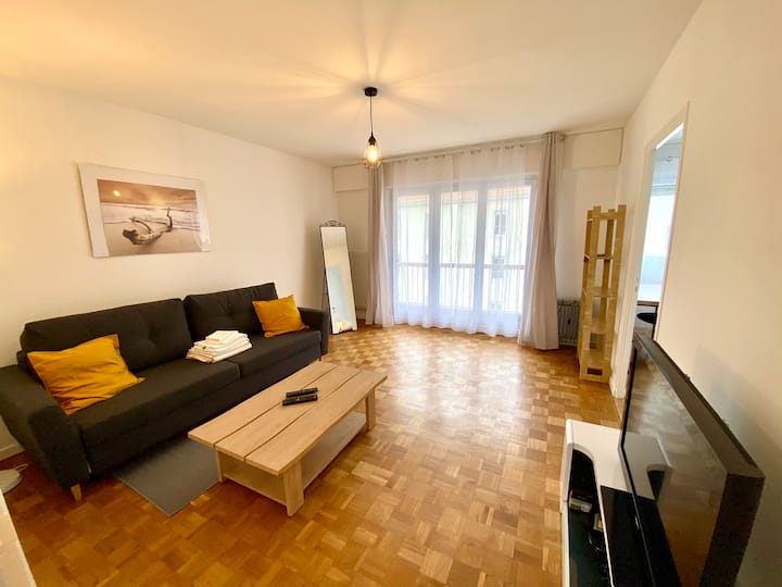 Are you around for a couple of weeks ? Have you come for an exhibition on the Swiss side ? Or for a meeting at one of the International Organizations of the United Nations ? We can help you save money on your accommodation cost by renting our apartment located in Annemasse, 1mn walk from the train station that takes to the heart of Geneva in a 23 minutes train ride. You may have come to enjoy the French ski resorts of Saint Gervais, Chamonix, Avoriaz, Porte du Soleil, and you also plan to hop on and off Switzerland ? Our accommodation can suit your need. Located only 1mn walk from the Annemasse train station, that is only a 23mn ride to Geneva, and connects Evian les Bains in 40mn. From this station, you can also access the beautiful city of Annecy and even go skiing in Saint-Gervais without needing a car or enjoy the thermal baths ! If, on the other hand, you plan to visit for business, that's all good as well to stay in our apartment where you'll benefit from a lower accommodation price compared to Switzerland while having Geneva, Versoix, Nyon, Coppet cities in direct line by train. From there you also connect to the Swiss railway to reach Lausanne, Neuchatel, Berne, etc.